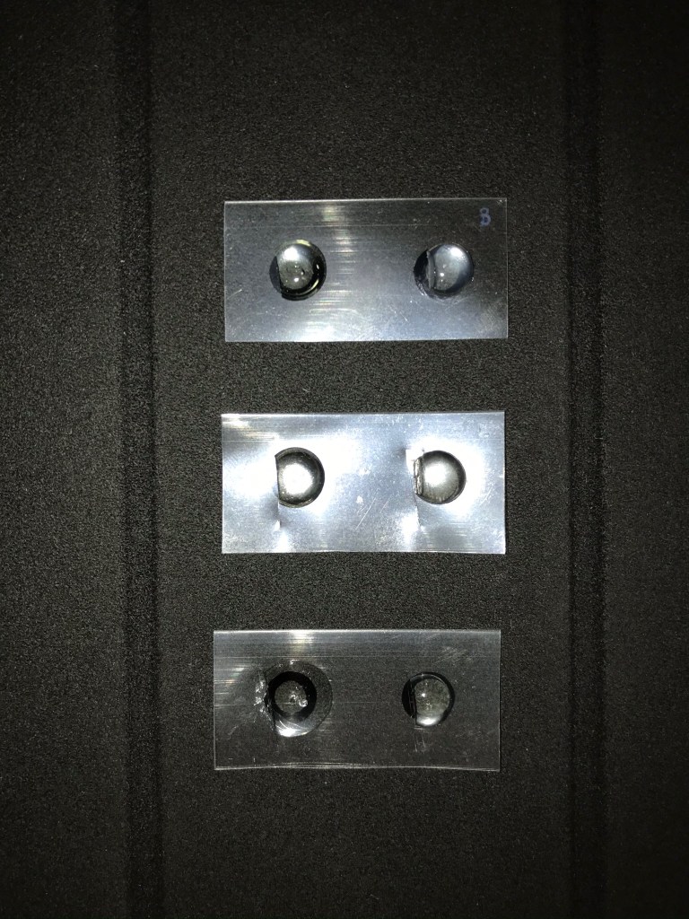 ジェルの試験体の硬さを確かめようと30度カッターの刃を入れてみました。刃を刺した時の刺さり具合はどれもほんの少し刺さる程度でしたが、1/3程に切ろうとしたとき、バリバリっとガラスの様に割れ崩れるものと、スッと切れるものがありました。ララジェルのビルダーとココイストのプラチナボンド2が前者のガラスの様でした。私はココイストのプラチナボンド2を自爪にのせたことがありましたが、1週間経たずに欠けました。私の様な薄く柔らかい爪には合わないジェルだということがわかりました。