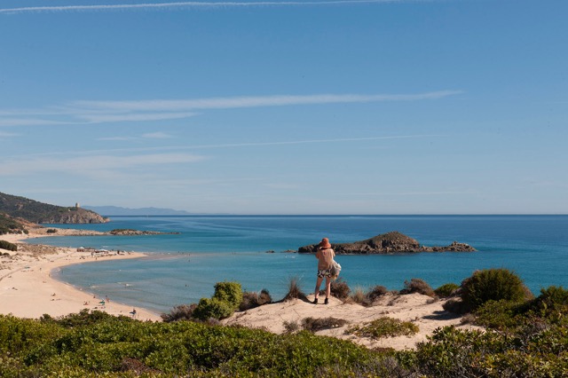 二枚の写真はサルデーニャ島の砂浜です。砂はベージュ色っぽく海水がとてもキレイ!
