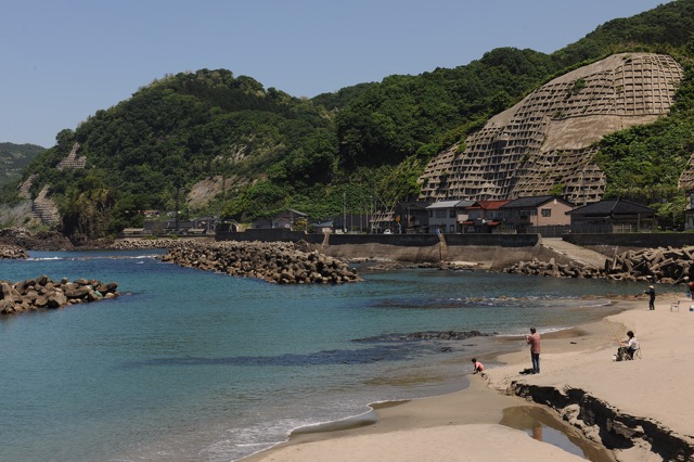 一方私が毎夏よく遊んだのは新潟の日本海の砂浜です。砂はやや明るい色で、橙の岩があちこちにあります。海水はとても温かく、クラゲがでます!特にお盆を過ぎると出ると言われていて、海中でも見えないけれど、触れるとビリビリとした痛みが少しの時間続くので、痛み逃しに砂を擦りつけたりしていました。よく祖母と日没まで遊んだものです。