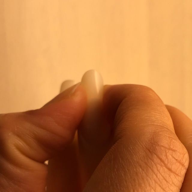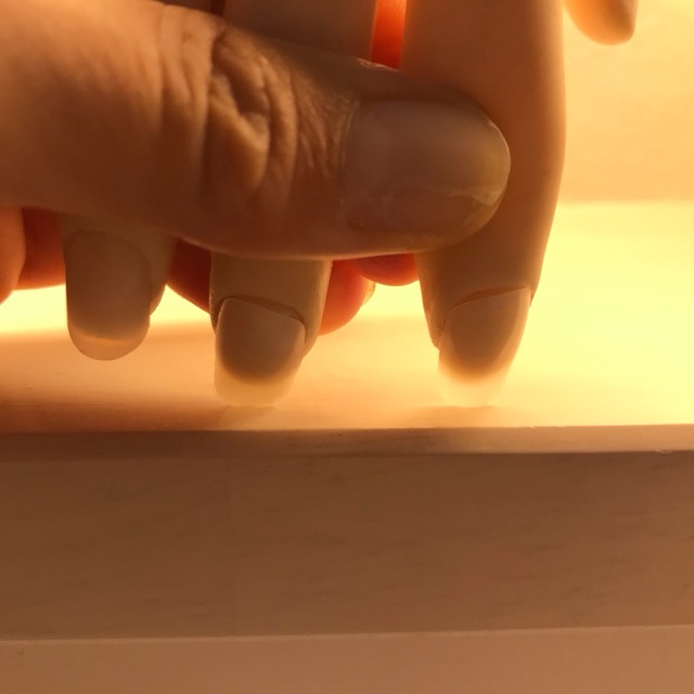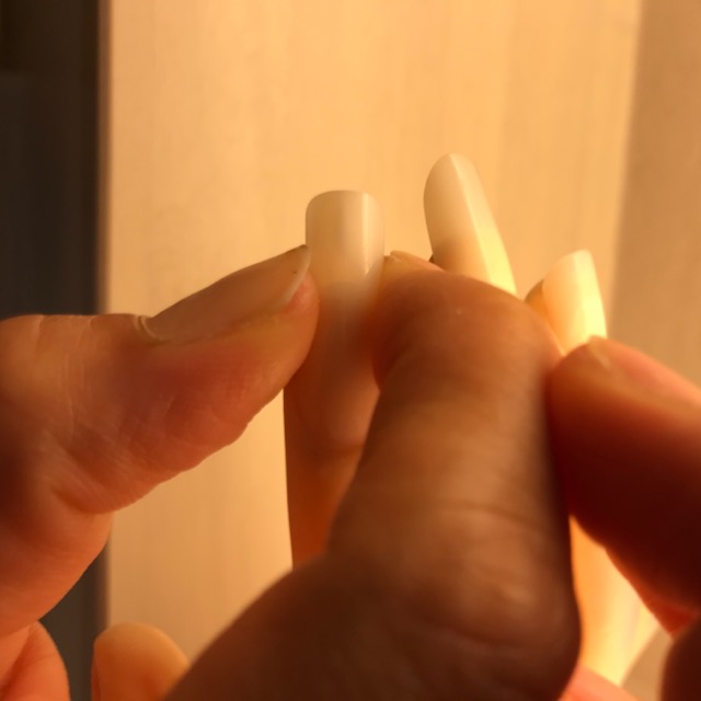 Le mie unghie erano lunghe perché erano trascorse 2 settimane dall’ultima volta che ero andata al Nail salon. Accade che le unghie si curvino dopo aver fatto la doccia e quindi dopo essere diventate calde e umide. E ho provato a far curvare le unghie del dito anulare alternativamente, prima facendo pressione sull’una e poi sull’altra.