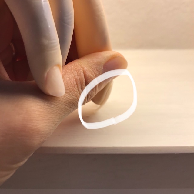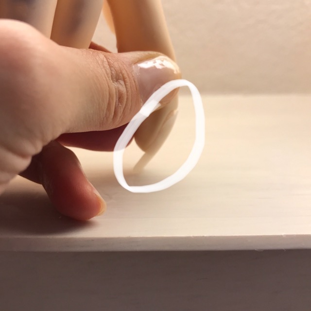 ポイントとスクエアオフのチップを作り、ハンドくんにレジンで接着しました。それから50度くらいのお湯に5分浸しました。取り出し、2つのチップの強度をみてみると…