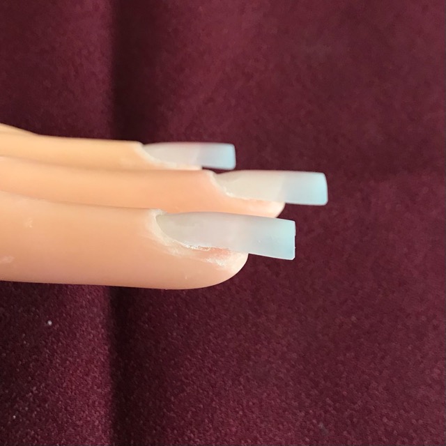 アクリルもカット出来ると謳っておきながら、柔らかな練習用ハンドとアクリルチップの間にかかったひねりの応力に数回で負ける、という製品。