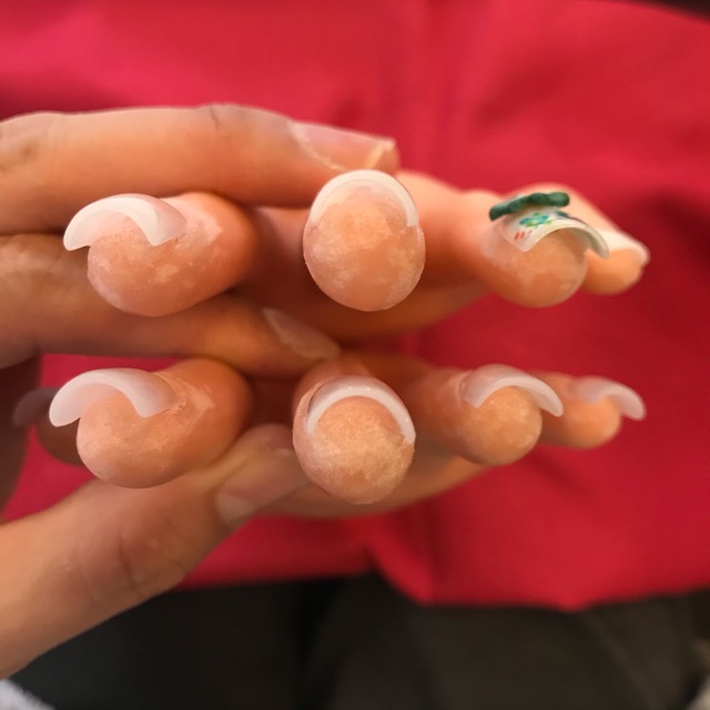 Ieri ho impiegato 2 ore e 5 minuti per sette unghie di sculpture e 25 minuti per nail art. All’esame avrò 2 ore e 40 minuti ,quindi ero fuori tempo,considerando la preparazione etc.!😥