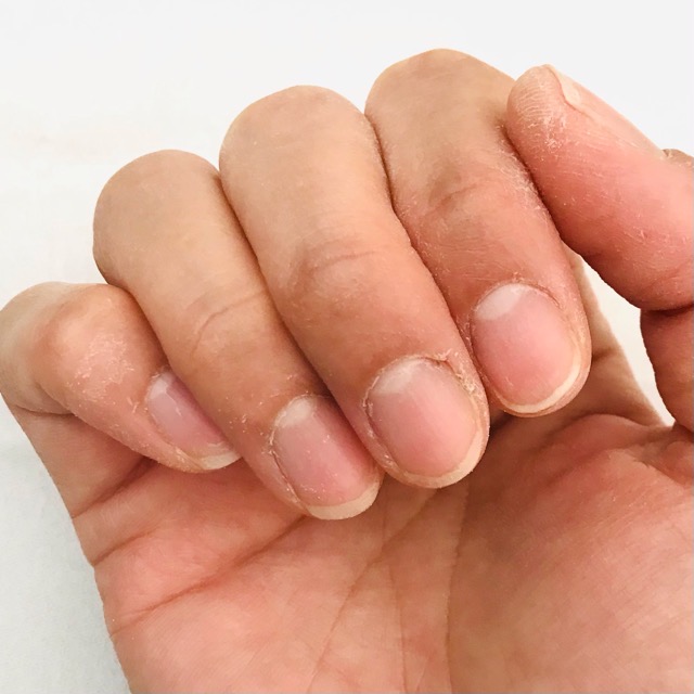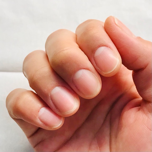 先ずネイルを短くカットしたせいで、指先の皮膚があらわになり、硬くなりました。