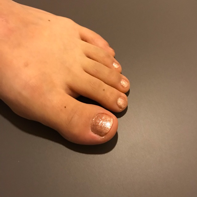 Avendo applicato un colore scuro e rosso calmo alle unghie delle mie mani,âšallora ho messo un color carne e lucido (glitter Gel)a quelle dei piedi. Sembra che vada bene con tutti i tipi di sandali!ð