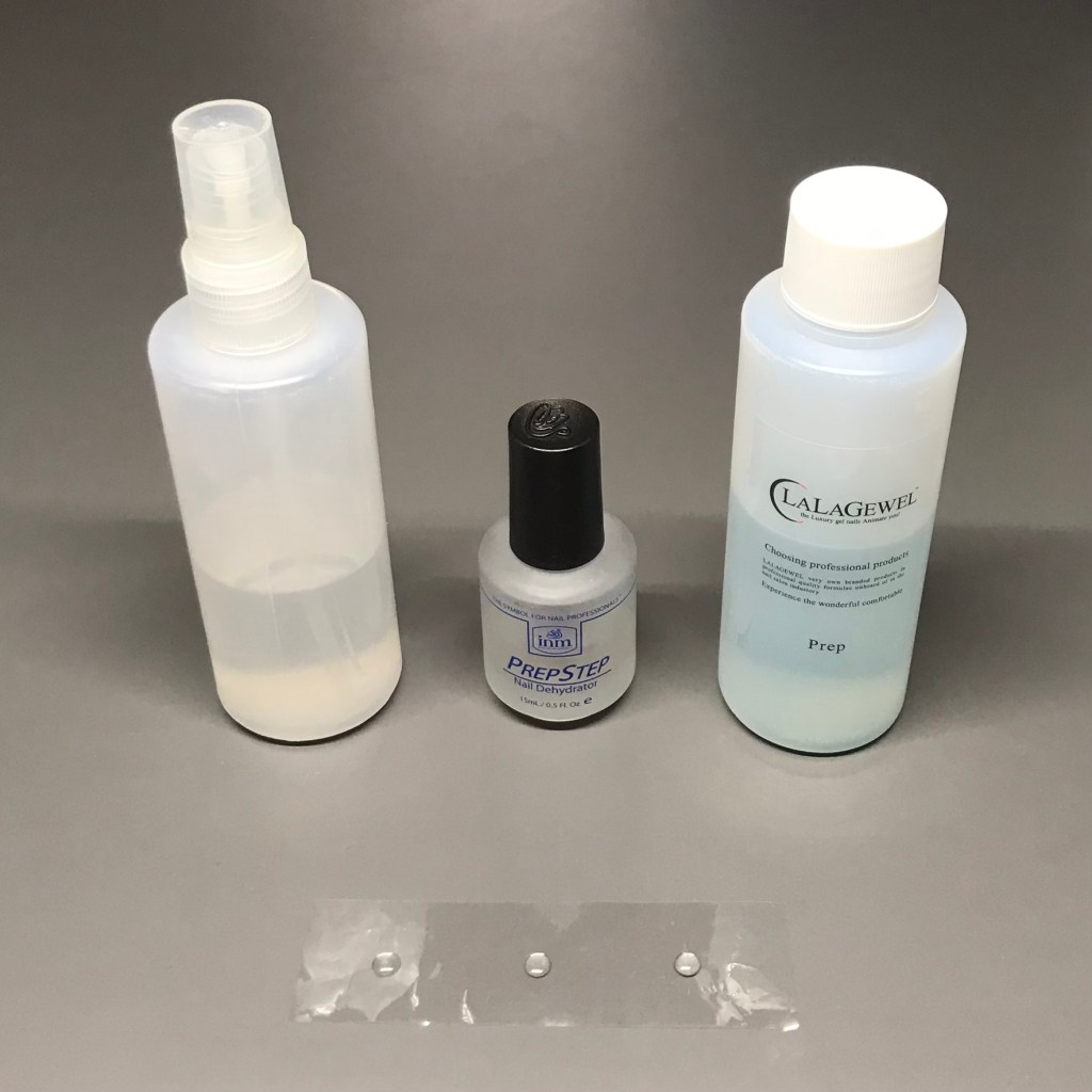 エタノール、inm のプレプライマー、ララジェルのプレップ、の3つで密着度をみてみました。