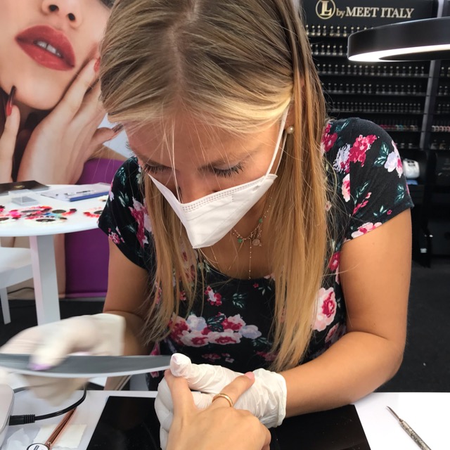 施術社は東欧出身者。イタリアでは本当に多いですね、東欧ネイリスト。