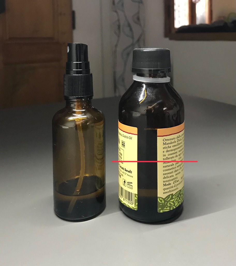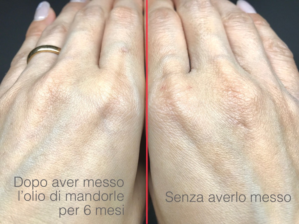 Mettevo l’olio di mandorle sulla mano sinistra ogni sera dopo la doccia per verificare come fosse efficace quest’olio, avendolo scritto sul mio blog.
