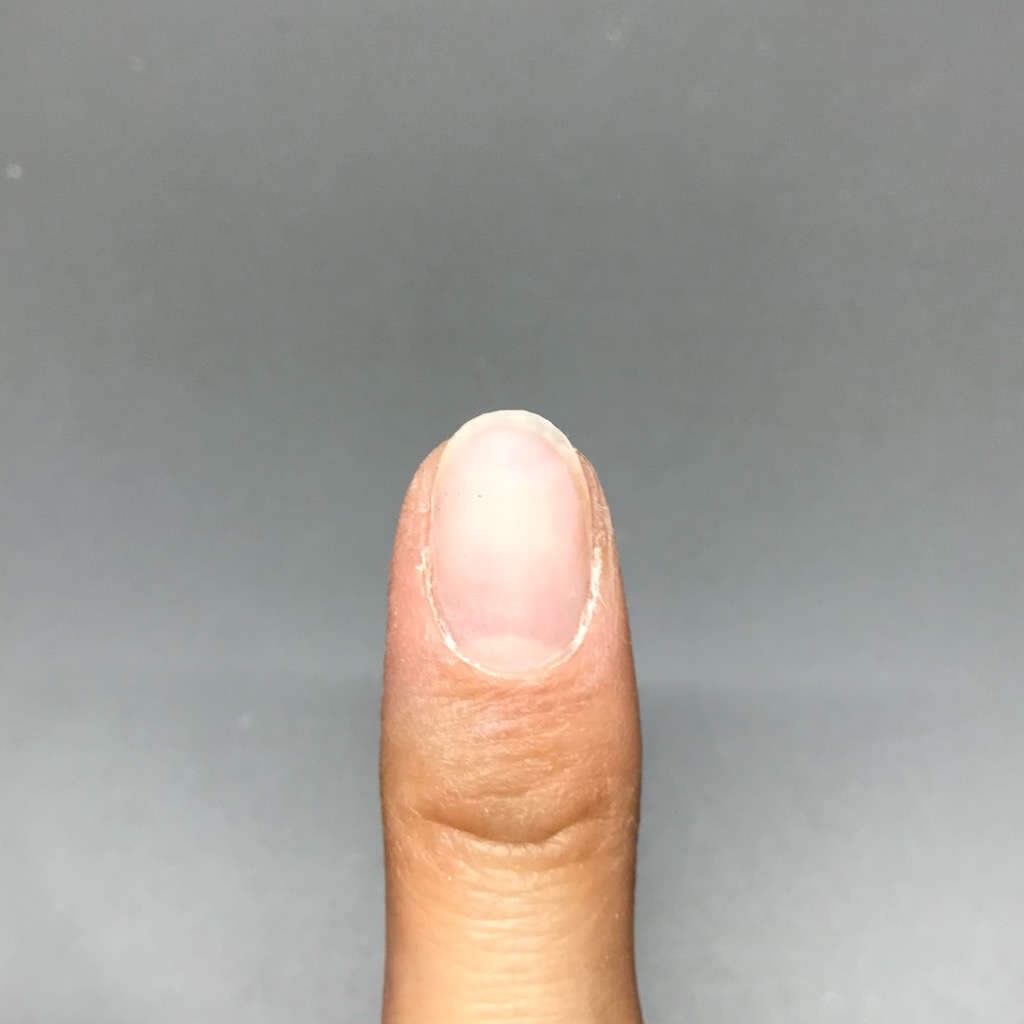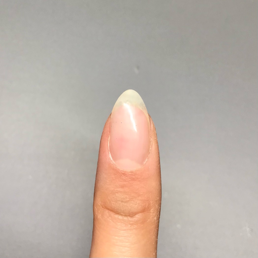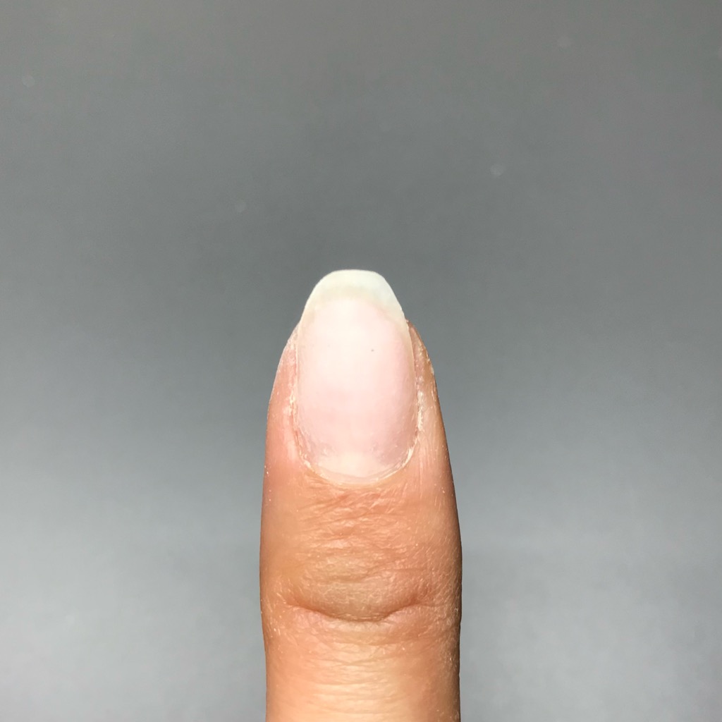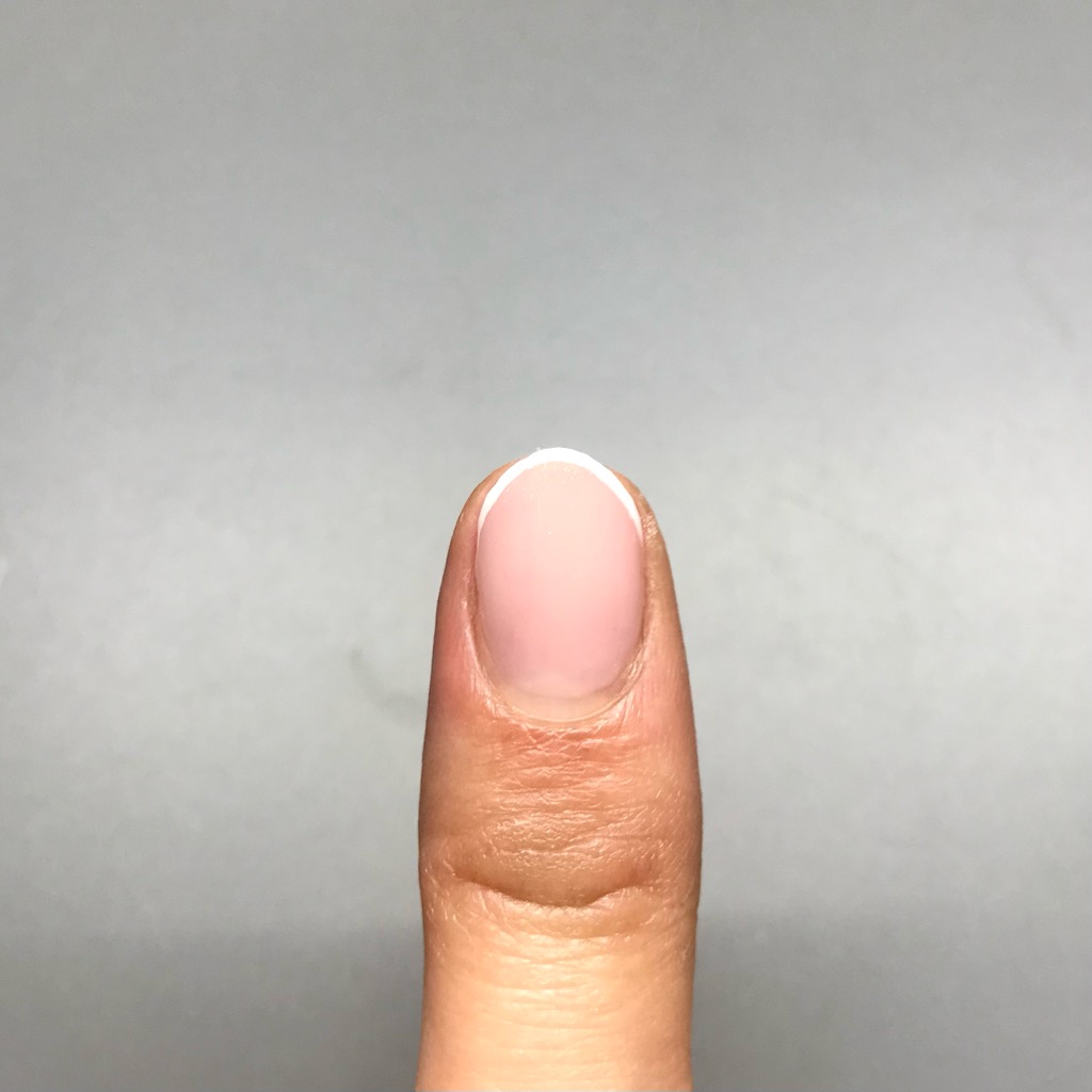 ネイルベッドの長さは短くなり、フリーエッヂのホワイトが何と心もとないことか。