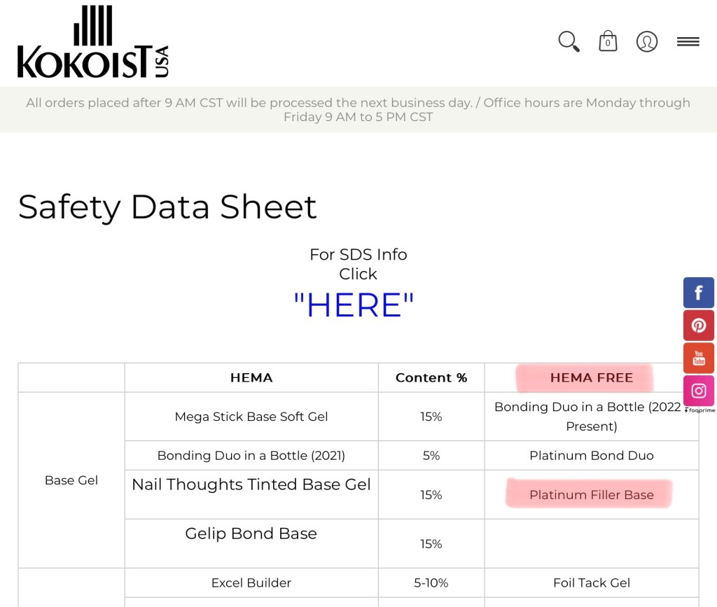 KOKOISTというメーカーのベースジェルを使うことがほとんどなのですが、Platinum Filler Base という商品には、HEMAが使われておりません👏👏👏✨