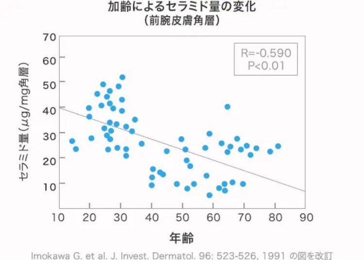 しかし、セラミドは年齢とともに減少します。なんと50歳では、20歳の時の半分だそうです!なので、積極的に摂取していかなければなりません。