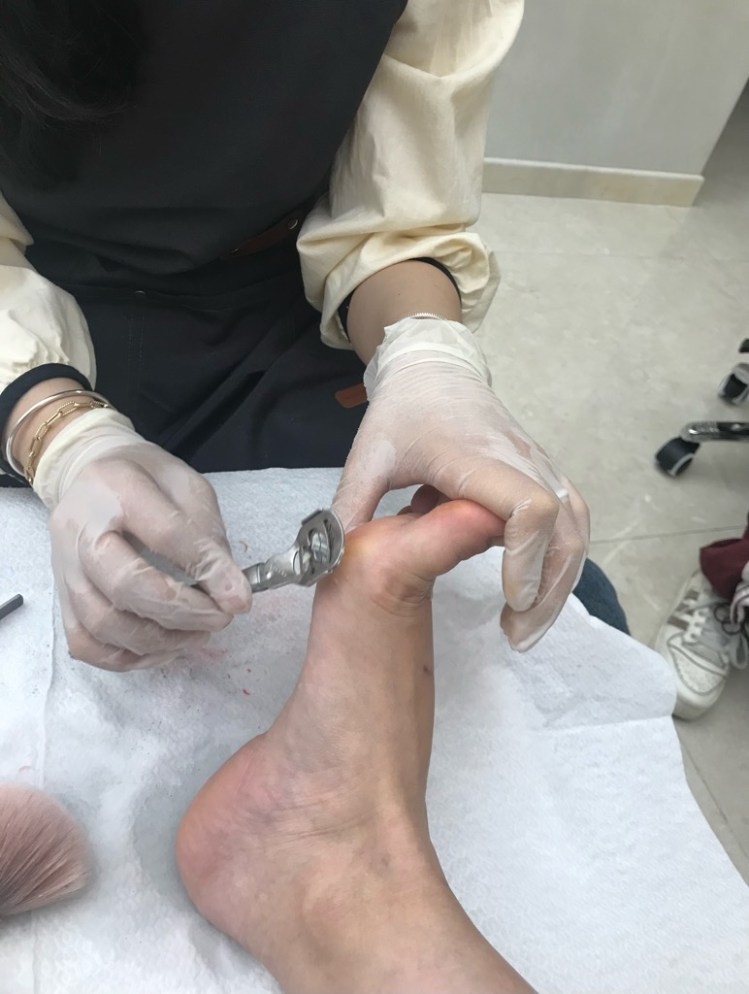 私の足の親指は爪が大きいのもあって、生え変わるのに1年かかります。1か月半ごとにここに通っていたら、8回も同じ場所をファイルでやられるわけです。