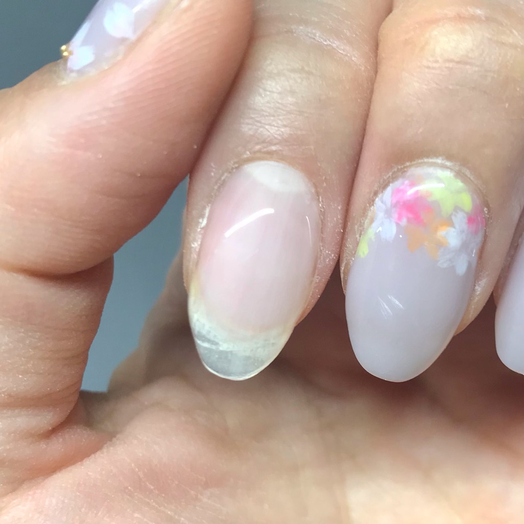 Il mio soggiorno in Giappone è stato prolungato, e quando non ho avuto altra scelta che usare solo le lime per rimuovere il gel e vivere con le mie unghie, le mie unghie sono diventate così.Per il momento, me ne sono preso cura.