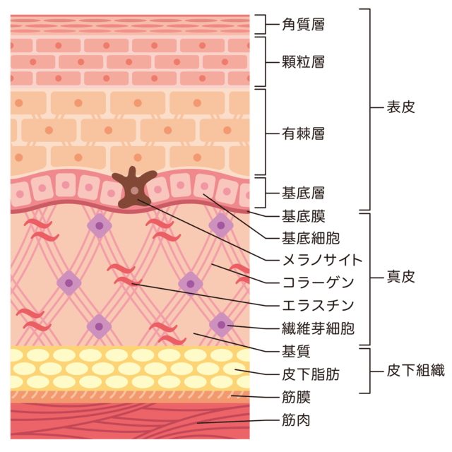 UVBは約5%が皮膚表面から0.1mm下にまで透過します。これに対してUVAは約7%が皮膚表面から0.5mm下にまで透過。日焼けしてすぐに皮膚が赤くなることをサンバーンといいますが、これはUVBが表皮の細胞に受けたダメージに対して、血流量が増加したもの。その後メラニン細胞がメラニン色素を分泌して紫外線の侵入を阻止しようとしますが、それをサンタンといいます。