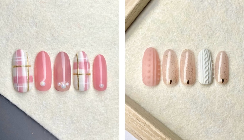今月の定額ネイルアートは、ニットネイルとチェックネイルですが、実はお客様からの要望で施術したネイルアートなのです✨